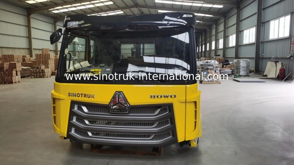 SINOTRUK HW76 kabin, bir yataklı ve 2 koltuklu, üç hızda 2 kollu ön cam silecek sistemi, ısıtma ve havalandırma sistemli, sönümlü ayarlanabilir sürücü koltuğu, dış güneşlik, emniyet kemerleri, ayarlanabilir direksiyon simidi, hava kornası, klima, enine dengeleyici, 4 noktalı tam yüzer süspansiyon + amortisör ile.