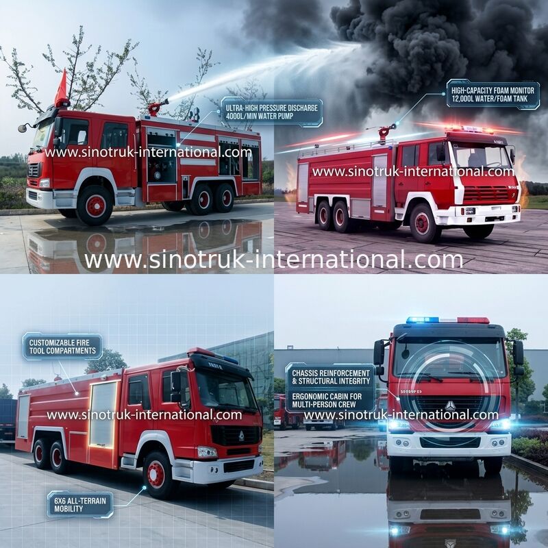1) SINOTRUK Fire Fighting Truck have strong power, short acceleration time, compact structure, occupant space, low floor, convenient to staff on and off.